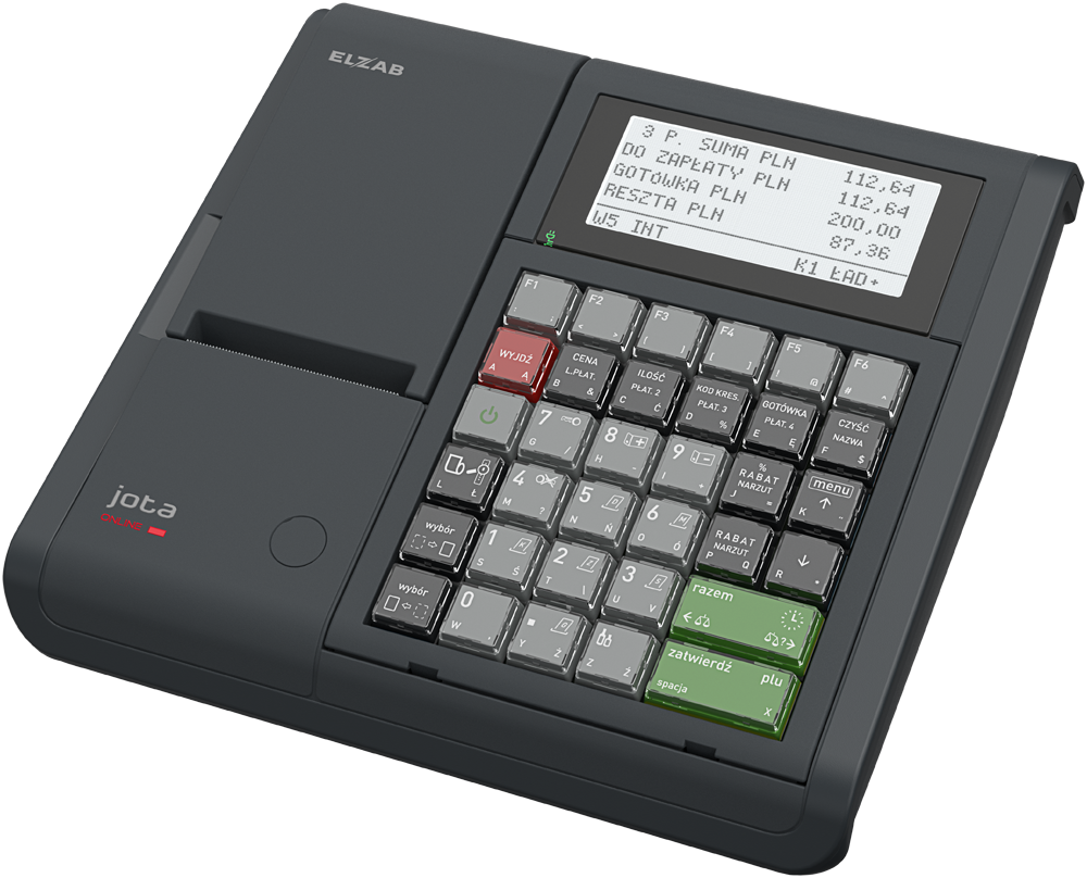 Kasa ELZAB Jota ONLINE to niezawodna kasa fiskalna wyposażona w trwałą klawiaturę mechaniczną oraz 4-liniowy wyświetlacz kasjera. Konstrukcja oparta o sprawdzone, zaawansowane rozwiązania systemowe modelu ELZAB Jota z kopią elektroniczną. Przeznaczona do pracy w sklepach spożywczych, mię....